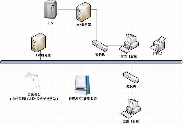 出入庫站計算機:運行客戶端軟件,負責(zé)出入庫操作及庫存管理,同時連接打印機負責(zé)打印出入庫報表、連接條碼打印機進行條碼打印。
