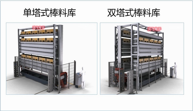 塔式棒料庫分為單塔式棒料庫和雙塔式棒料庫,由多層料架、自動上下料裝置及控制系統(tǒng)組成。由主機控制,智能選取各層的原料,為生產過程提供優(yōu)質和自動化的管理輸送。塔式棒料庫具備自動上料、下料雙重功能?蚣芙Y構緊湊穩(wěn)定,具備定位準確,運行快速靈活等特點。