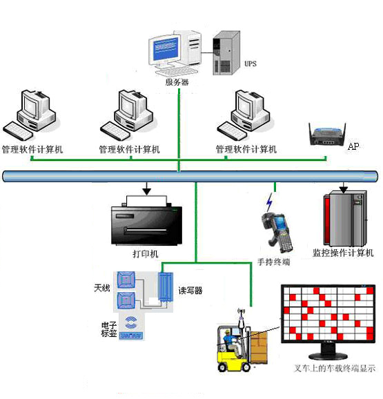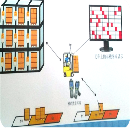 為了能夠方便叉車人員迅速找到需要存取物料的貨位,在高位叉車上配置車載終端電腦、閱讀器、天線。車載終端系統(tǒng)與物流管理系統(tǒng)緊密連接,接收存取任務,合理調(diào)度各個叉車進行有序工作,為叉車操作人員進行路線導航。提高現(xiàn)場出入庫效率。