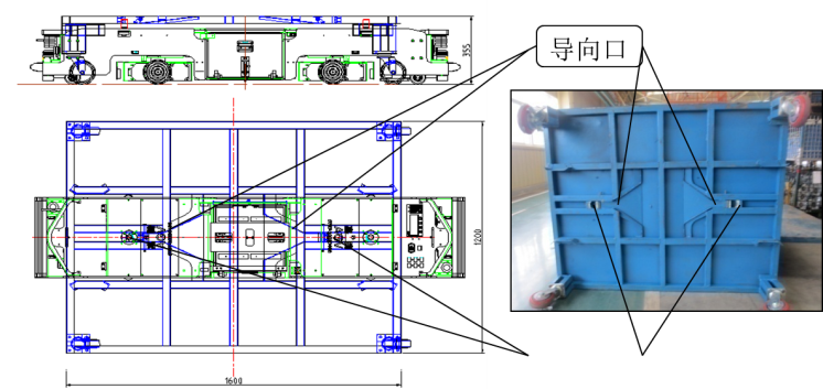 作為料箱與AGV之間的介子料箱托盤,既要滿足AGV牽引尺寸的要求,又要滿足升降機二樓進出口定位的要求,所以,還要設有兩個AGV嵌入口,因為只有這樣才可保證料車不受方向限制。而容器規(guī)格繁多,要適合所有料箱的尺寸要求,只有考慮單邊尺寸合適,另一邊的單向兩邊可超出托盤部分,小的按放2箱設計的原則。