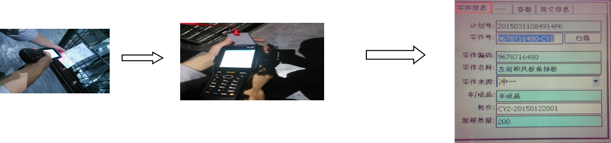 車間半成品需求——車間生產(chǎn)線班長根據(jù)生產(chǎn)作業(yè)計劃需求,通過手持掃二維碼冊、輸入出庫數(shù)量(系統(tǒng)自動折算零件箱數(shù)量)、輸入零件?空军c號、確認所有零件品種。