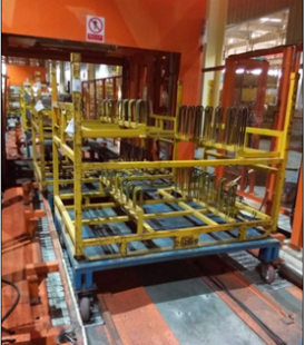 (1)整個物流路線上以料車作為運送單元,所有物料(白件、成品、空箱)放在料車上輸送,料車設四個萬向輪,規(guī)格一致(能夠用于AGV搬運)。