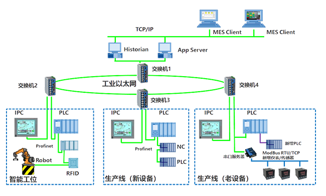 MES系統(tǒng)是面向制造企業(yè)車間執(zhí)行層的生產(chǎn)信息化管理系統(tǒng)。主要管理及監(jiān)控車間生產(chǎn)過(guò)程,介于企業(yè)計(jì)劃層與車間控制層之間,起到承上啟下的橋梁作用,通過(guò)各種標(biāo)準(zhǔn)接口與計(jì)劃層/控制層進(jìn)行通信協(xié)同生產(chǎn),是實(shí)現(xiàn)智能制造的核心系統(tǒng)。
